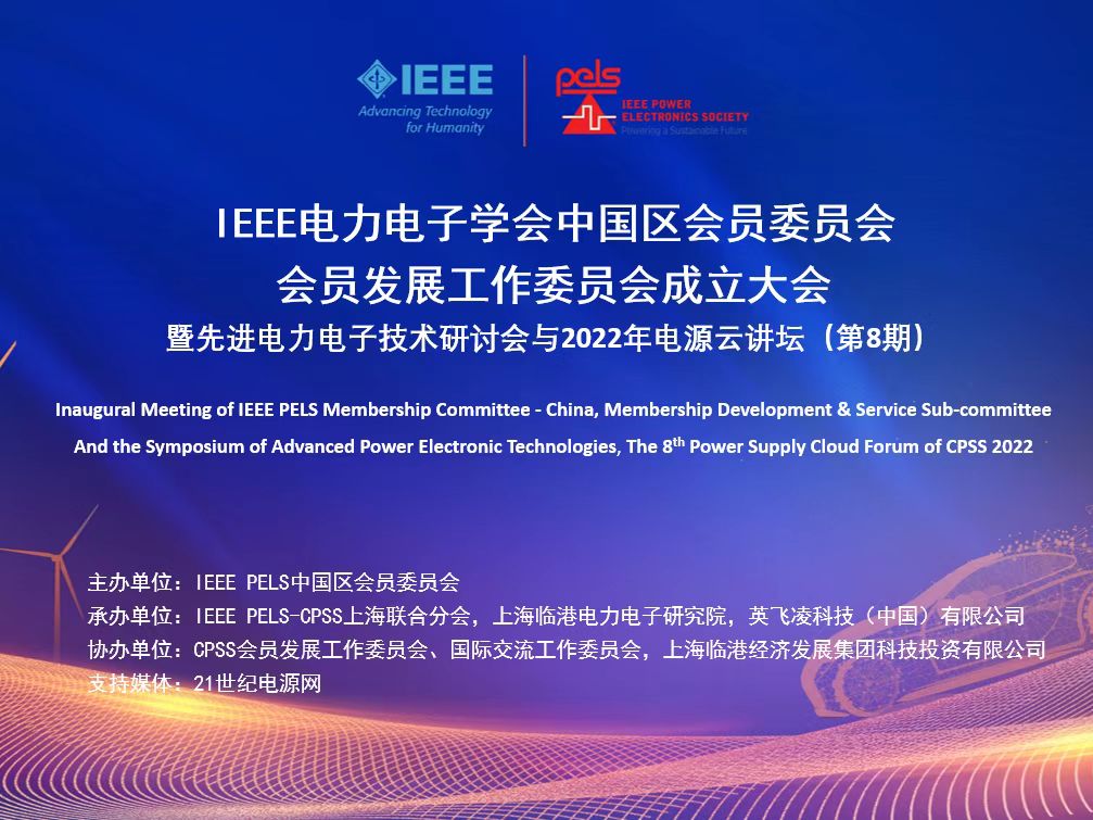 2022年9月18日,由上海臨港電力電子研究院承辦的IEEE電力電子學(xué)會中國區(qū)會員委員會,會員發(fā)展工作委員會成立大會,暨先進(jìn)電力電子技術(shù)研討會與2022年電源云講壇(第8期)在上海臨港成功舉辦。