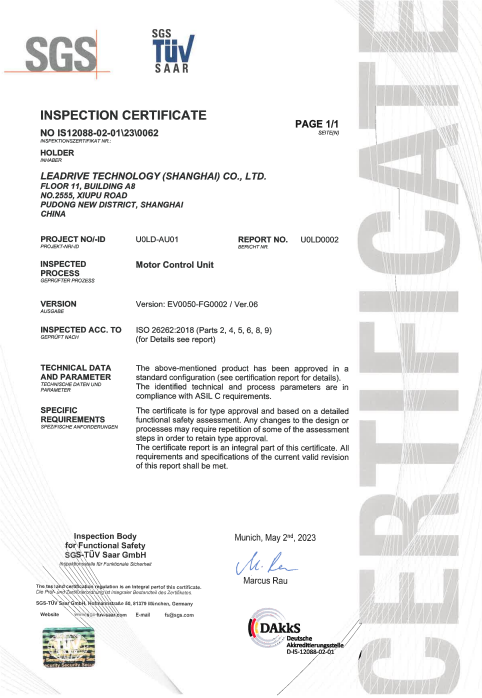 近日,國際權威第三方審核認證機構SGS為臻驅科技(上海)有限公司(以下簡稱“臻驅科技”)頒發ISO 26262:2018 ASIL C汽車功能安全產品認證證書,該證書是臻驅科技獲得的首個功能安全產品認證證書,也是繼2021年7月獲得“ISO 26262:2018 ASIL D汽車功能安全流程認證證書”后,在汽車功能安全產品開發能力建設的又一重大里程碑。